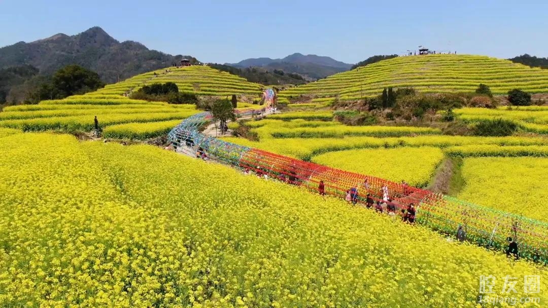 吹苑野风桃叶碧,压畦春露菜花黄。油菜花的花期在2-4月,现在,正值花蕊萌芽时,赤岸镇迎来了第一波油菜花花海,漫山遍野的油菜花放眼望去,处处金黄。
