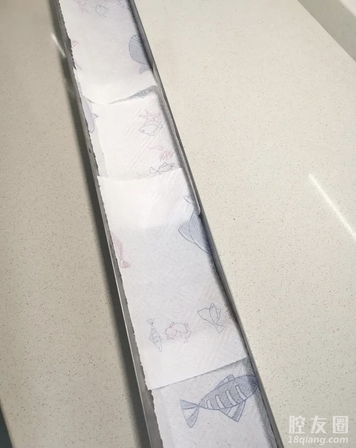 5、在抽油烟机的集油槽里铺上厨房纸巾一个月换一次,不用清洗,集油槽总会像新的一样,真的很省事。