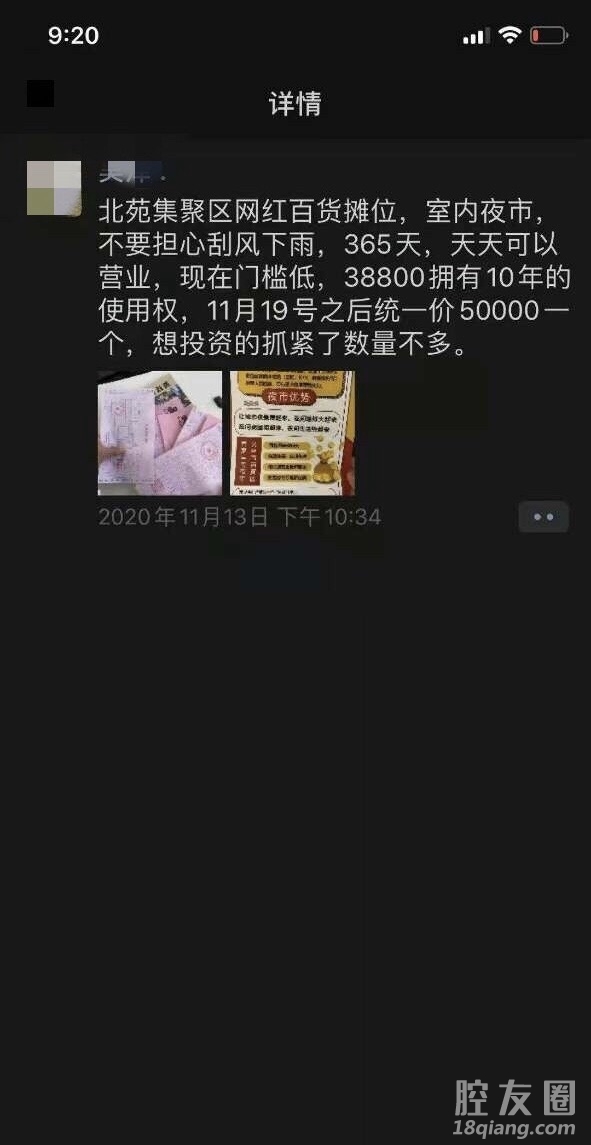 2020年北苑网红夜市在微信卖的非常火爆,当初销售宣传是38800元10年的使用权!现在要签合同了,合同内容却写着之前支付的38800元是一年租金,霸王合同。这个小夜市,还没有成形,甚至装修都没有做好,只放了几个铁架子!那么高的租金叫谁来做!