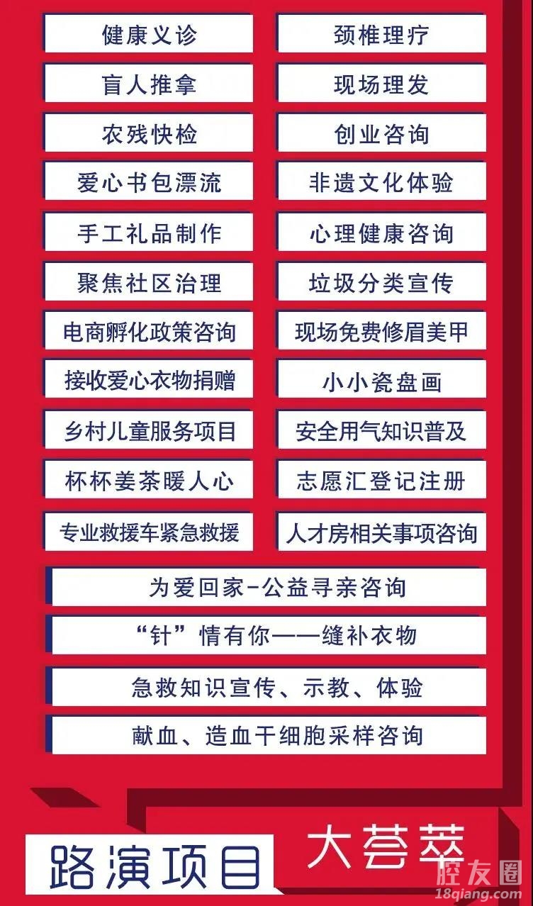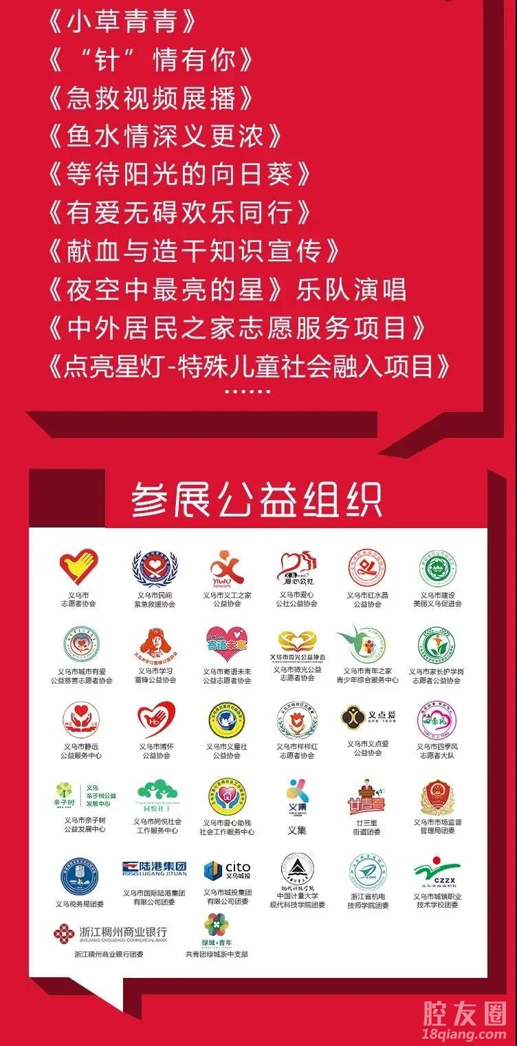本次公益博览会将邀请全市公益组织和志愿者一起参与到志愿项目和服务中来,集公益集市、志愿项目路演、义诊、爱心书包漂流、非遗文化体验、咨询等一系列活动。