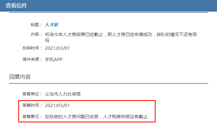 义乌市人力社保局答复:您反映的人才房问题已收悉,人才购房申报没有截止。(答复时间:2021年3月1日)