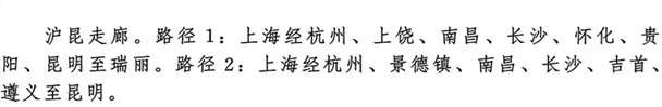 在6条主轴中,《规划纲要》为长三角—粤港澳主轴设计了3条路径,其中一条由上海经杭州、南平至广州。7条走廊中的沪昆走廊,由两条路径组成,其中上海-杭州—上饶—南昌-长沙—怀化—贵阳—昆明—瑞丽,从金华经过。