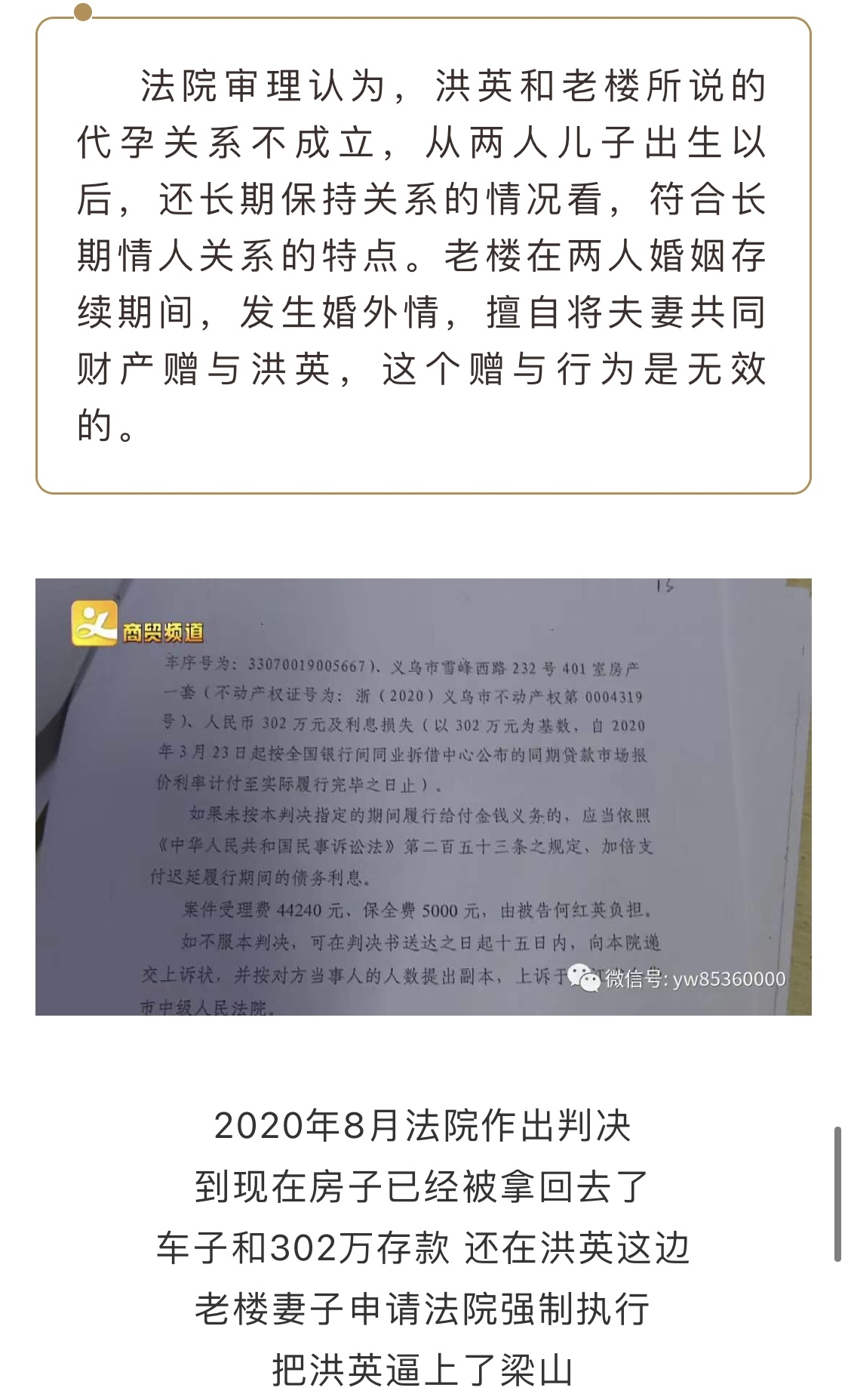 [义乌故事]500万借腹生子,婚内出轨,义乌七旬老汉被老婆告上了法庭...... [复制链接]