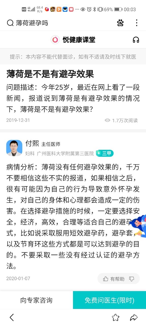 抖音上刷到薄荷有避孕的作用,然后就上百度了,结果就看到了这个医生的言论