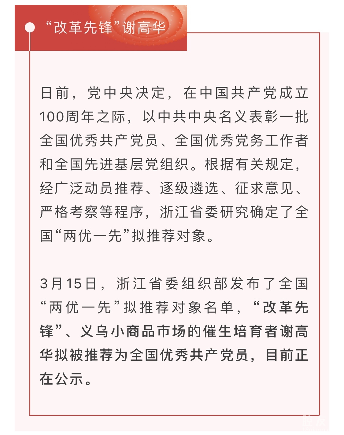 [义乌故事]他,拟被推荐为全国优秀共产党员! [复制链接]
