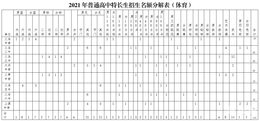 注:义乌中学等相关学校的三大球项目布点和招生计划2022年将做调整。