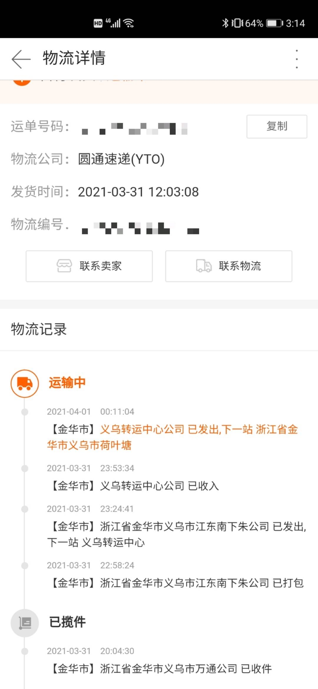我一个快递从4.1到今天都没有派送,还是义乌寄过来的