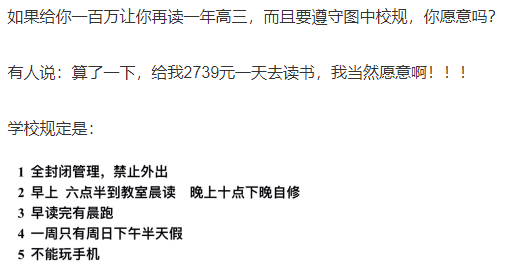 如果给你一百万重读高三你愿意吗?就是要作息规律,不许玩手机...