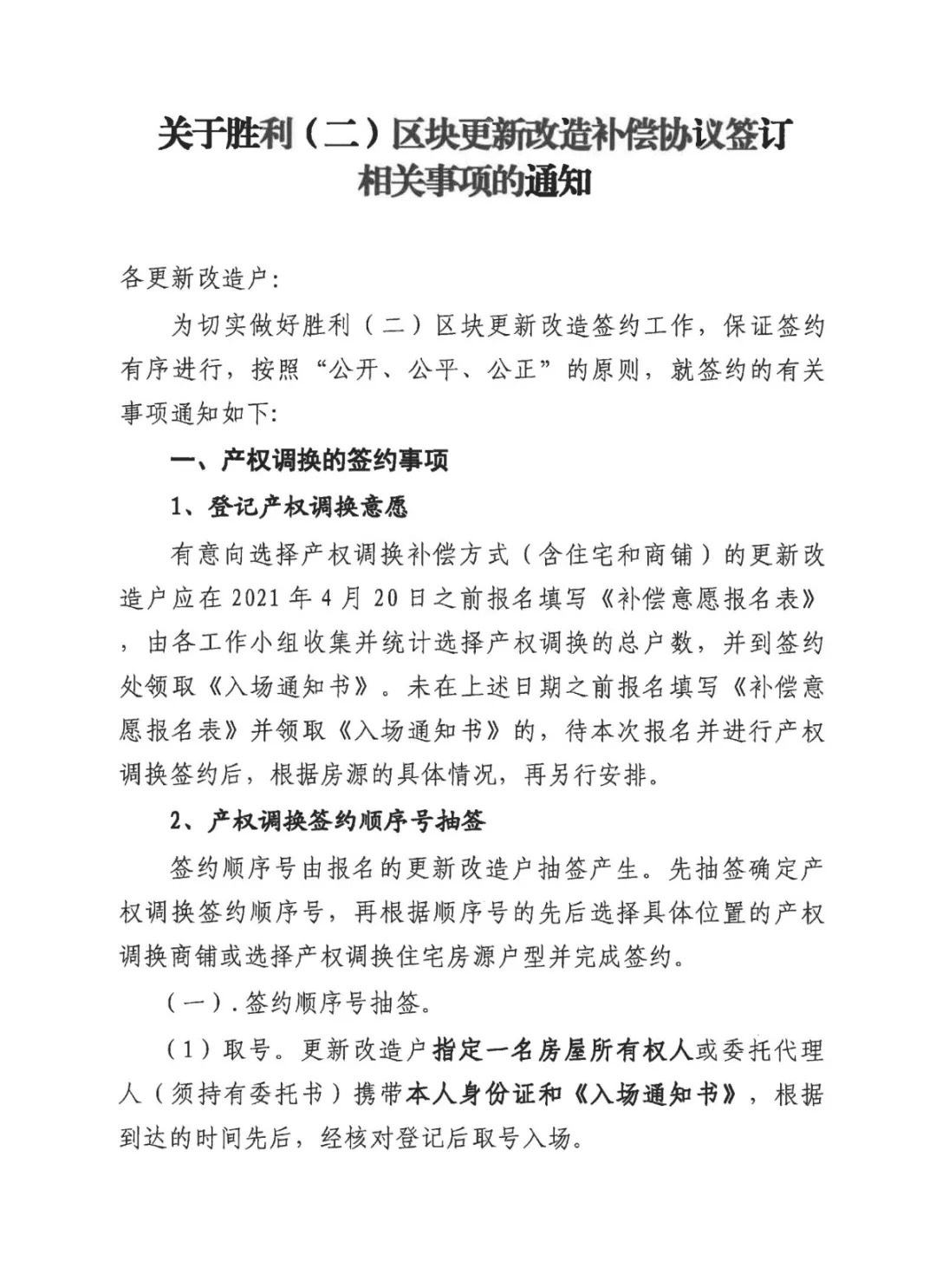 补偿协议签订相关事项的通知