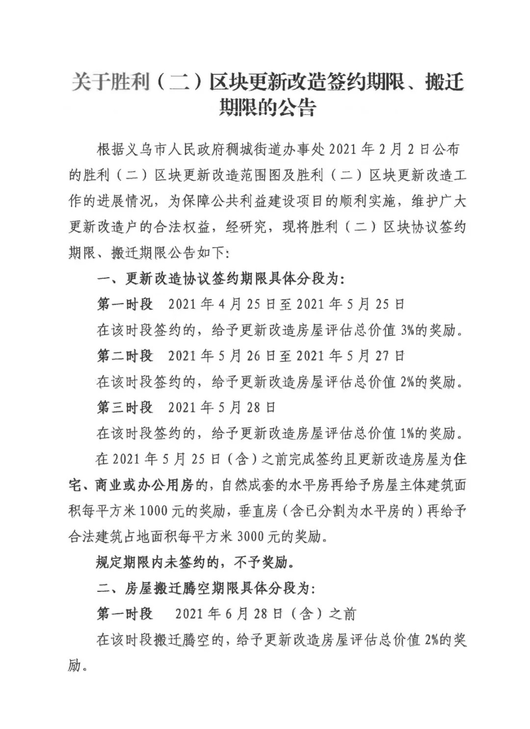 [义乌故事]胜利(二)区块更新改造签约期限、搬迁期限、补偿协议签订相关事项发布 [复制链接]