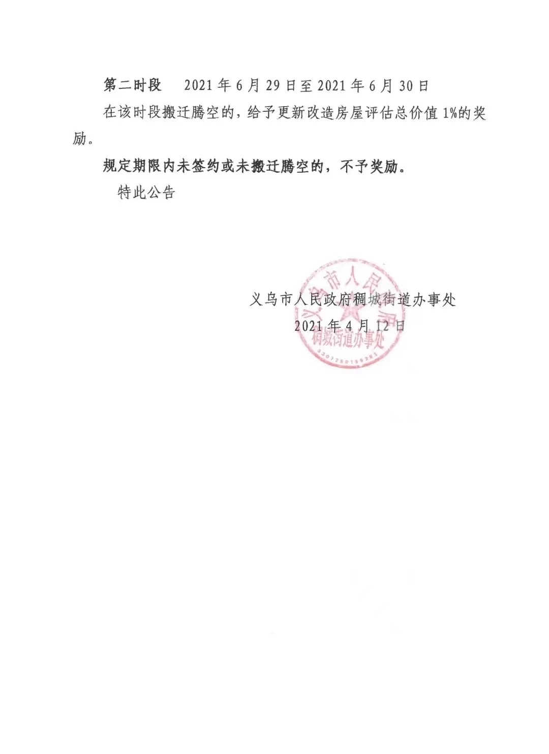 签约期限、搬迁期限的公告