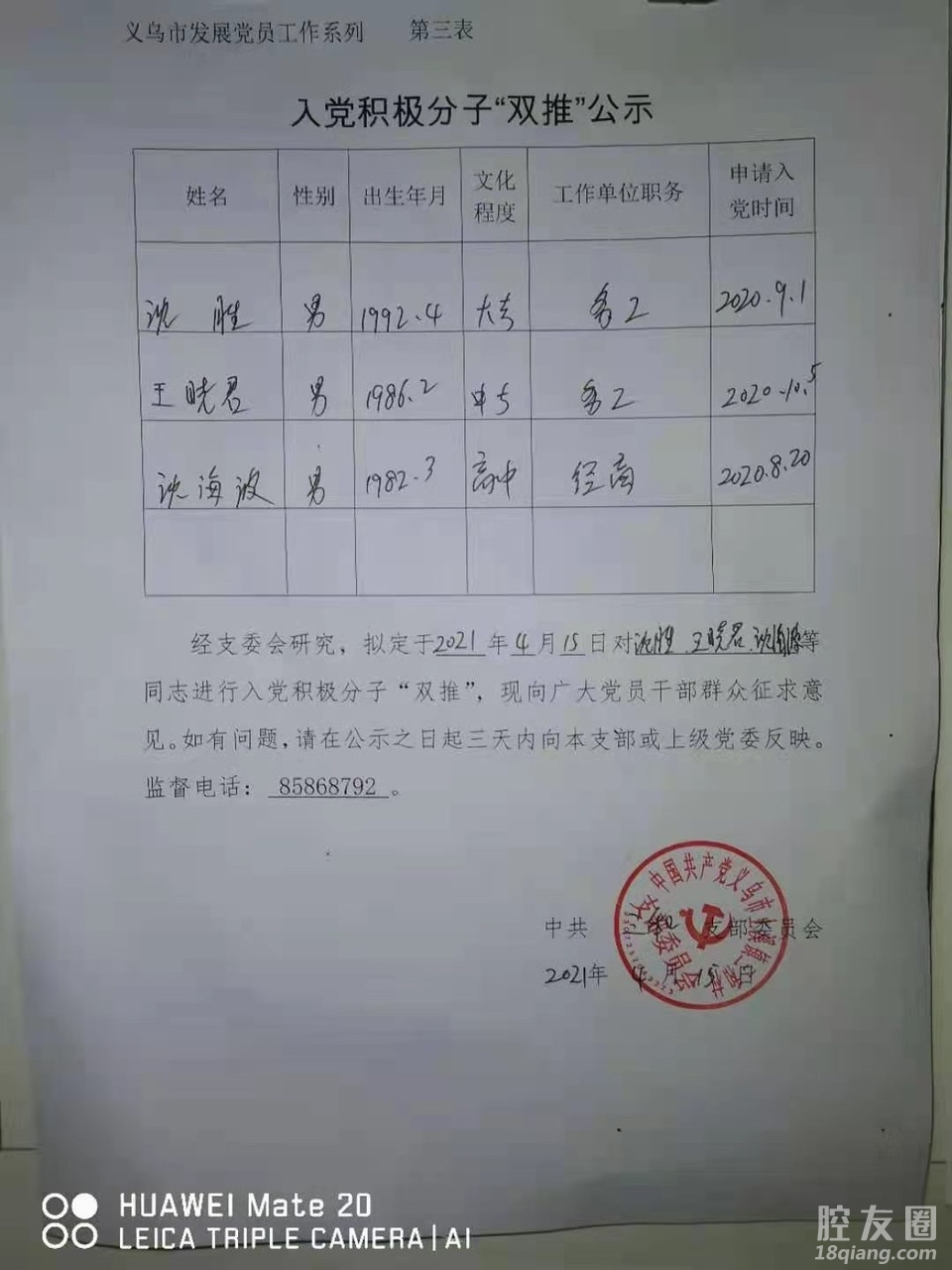 上溪镇三和村的村干部竟然干这种事情!大家一起来评评理!入党积极分子双推这么严肃的事情竟然可以弄虚作假!!!