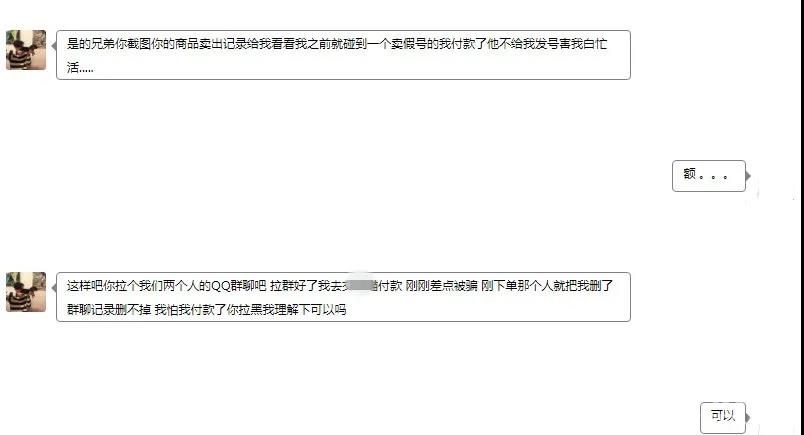 4月3日,家住廿三里的小温在某游戏账号交易平台上以900元的售价发布了自己的某款网络游戏账号。很快就有某“买家”向小温联系,要求加QQ沟通。加了QQ后,“买家”以之前被骗过为由要求小温建立QQ群沟通。 建好QQ群后,“买家”称自己已经下单,并付了钱,并发了张订单图片,要求小温扫描图片中的二维码和客服沟通并发货。