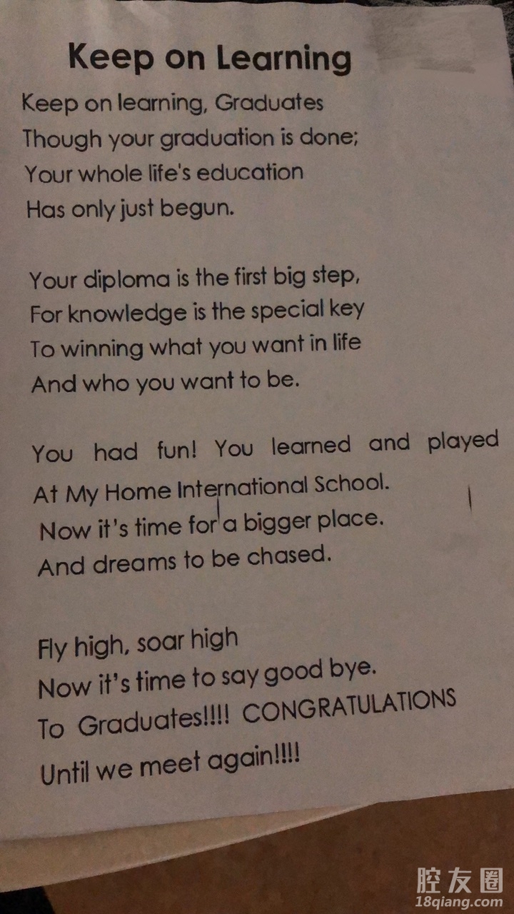 现在小朋友毕业典礼都这么高标准吗?毕业致辞全英文, [复制链接]