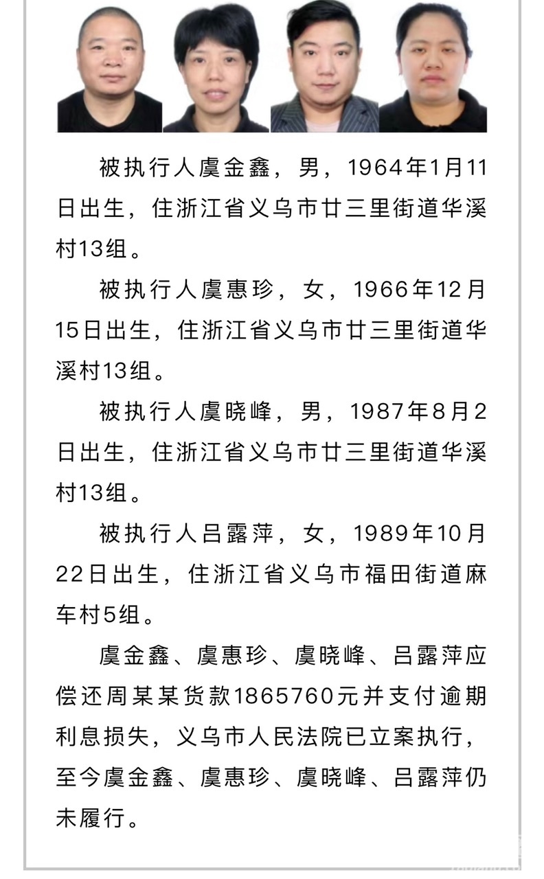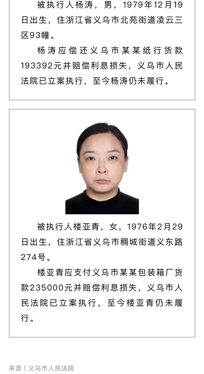 [义乌故事]失信曝光台丨实名曝光32人!附照片,不打码! [复制链接]