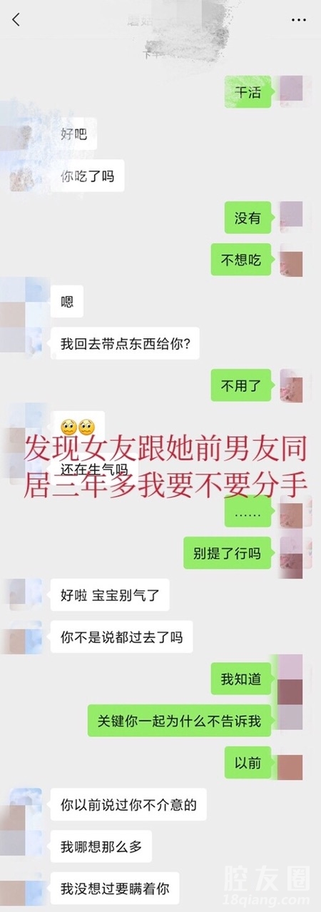 我跟我女朋友相亲认识的,当时第一眼就觉得女生跟其他女生不一样,对她也是一见钟情。后来就顺理成章在一起,之前也没刻意去问她的过去,可最近知道她跟她前男友同居三年多,一时间难以接受。不知道该怎么办??