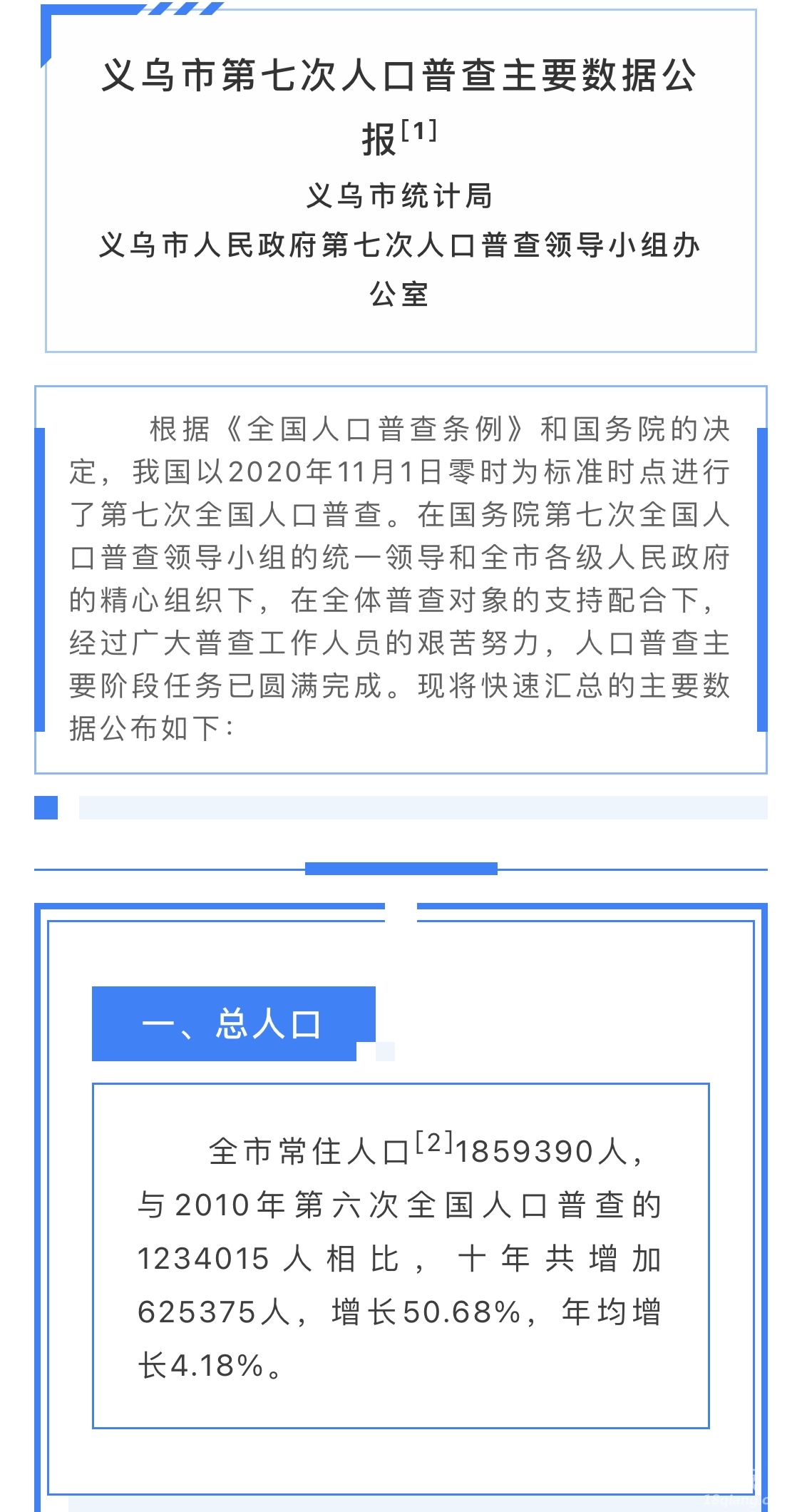 [义乌故事]义乌市第七次人口普查主要数据公报 [复制链接]