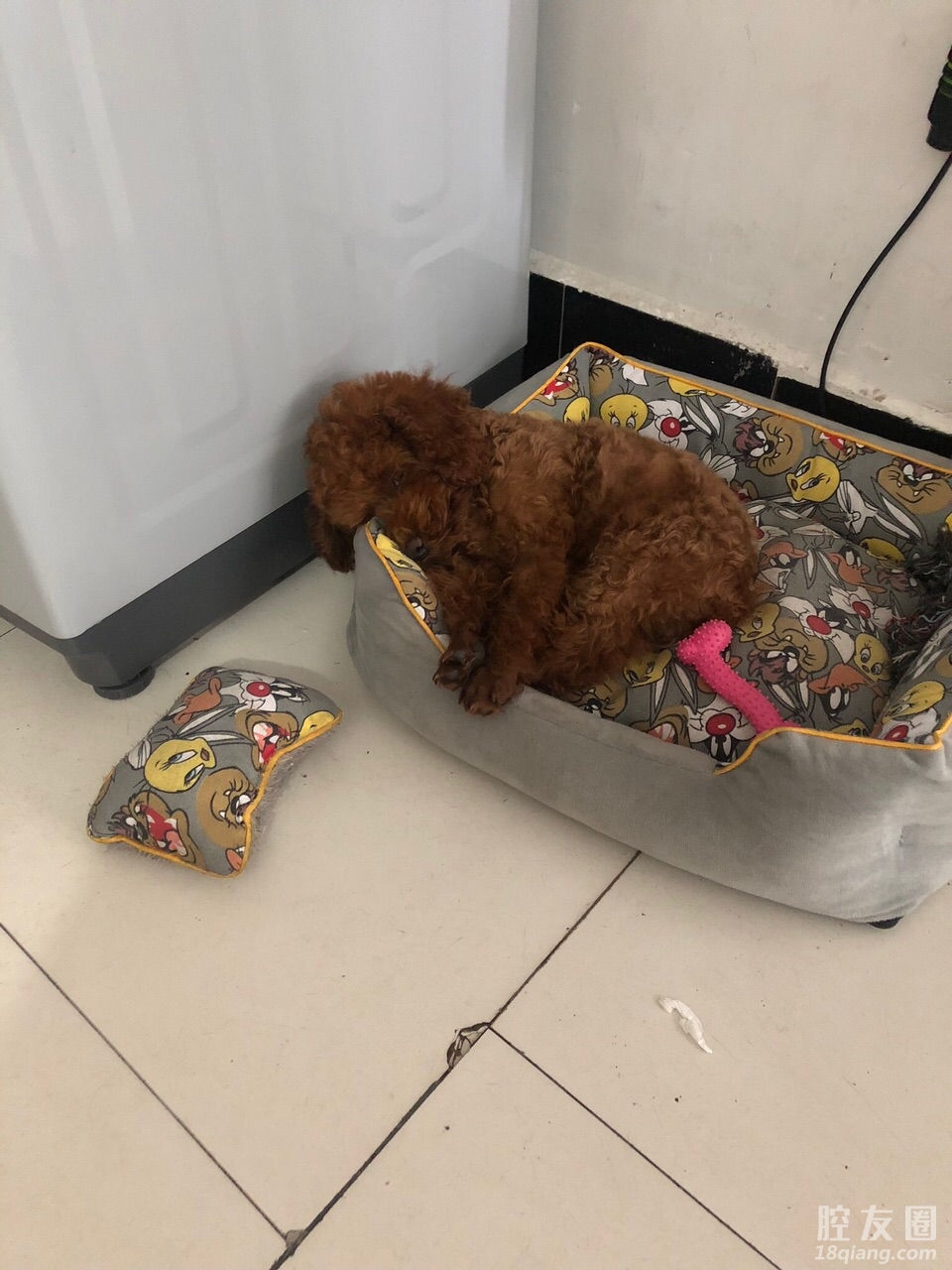 丢失时间2021年5月21日上午11:30分左右在家门口丢失,通过查找监控有可疑车辆带到北苑一带,狗狗太小看不清楚,是一只棕色的幼犬泰迪,叫名字有回应,名叫圈圈,三个月左右大,重量大约6-7斤左右,腿部有几根白色的毛,修建毛半个月,如有好心人捡到归还,重金酬谢3000元