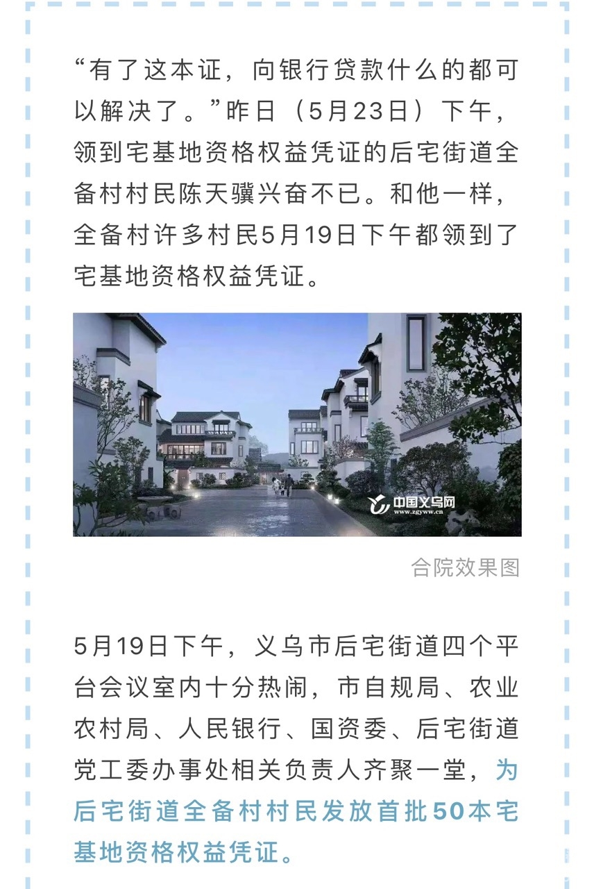 [义乌故事]义乌首批50本宅基地权益凭证发放!这本证,带来哪三大好处? [复制链接]