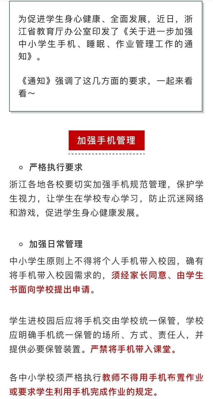[义乌故事]浙江发布通知!加强中小学生手机、睡眠、作业管理工作 [复制链接]
