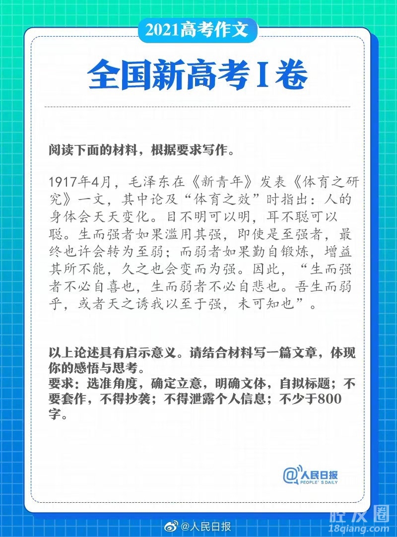 [义乌故事]2021高考作文题目出炉! [复制链接]