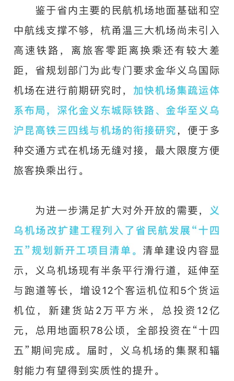 [义乌故事]义乌机场列入这个省级项目!还有这些利好消息 [复制链接]