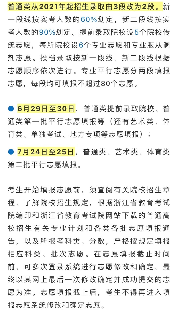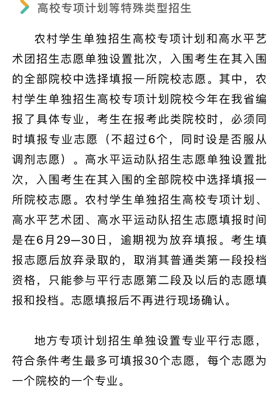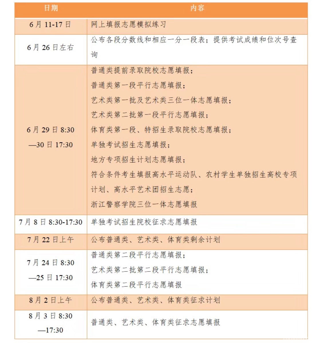 6月29日至30日,普通类提前录取院校、普通类第一批平行志愿填报等(还有艺术类、体育类、单独考试、地方专项等志愿填报);