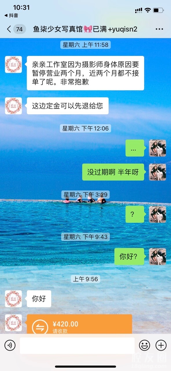 大家怎么看?虽说小事 ,但是....emmm....好不容易说等到快生日了去拍个照呢,店家这意思强退定金?