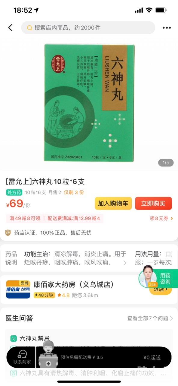 在中心医院对面的大丛林连锁药店买了一盒六神丸要88元钱,结果我在美团搜了一下一样的药一样的规格只要69元,这钱赚的是够黑的!
