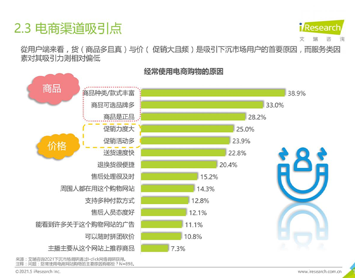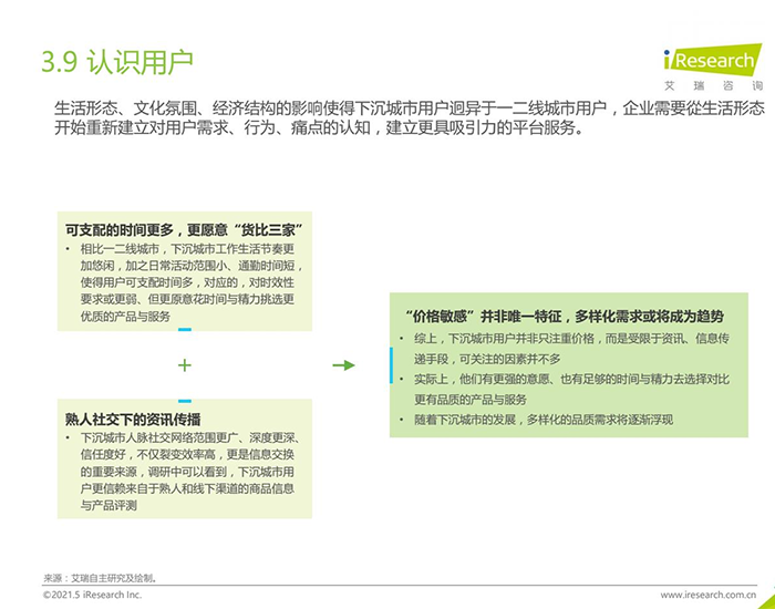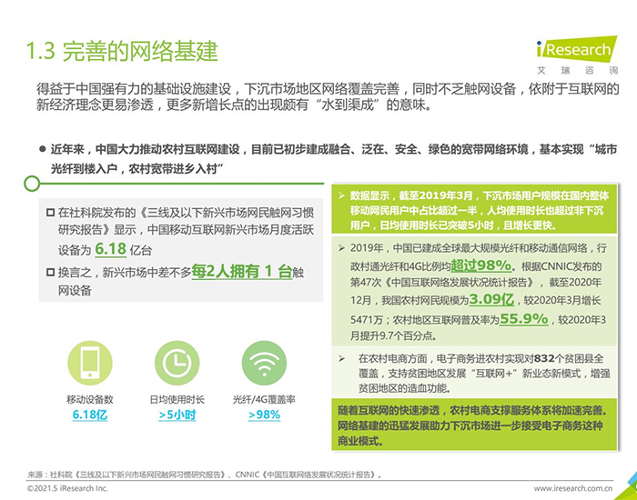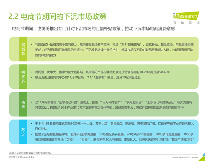 《2021年中国下沉市场电商研究报告》通过对三四五线下沉城市电商渠道下沉情况、消费者认知与使用习惯等行为进行分析,探索电商的下沉战略发展情况,以期为品牌与渠道下沉寻找机会与建议。
