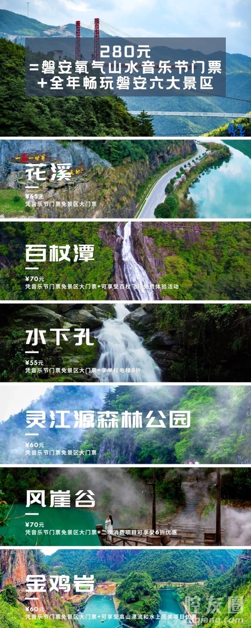 友友们,在音乐节享受完音浪之后 门票千万不要扔!你还能带它去水上冲浪! 因为氧气山水音乐节还有隐形福利—— 一票即可玩转磐安,畅享360°文旅体验    ↑磐安酒店和民宿良多,地址和电话已奉上 出则繁华,入则宁静,风月无边 听完音乐节后,不妨在此安枕 第二天再继续元气满满地上路 · 购票TIPS:点击文中任意一张音乐节海报,即可扫码购票。