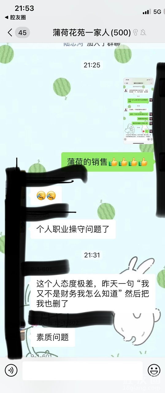 ????我一脸问号我没做什么过分的事情也没说过分的话吧?你作为一个销售人员,你的职业素养和职业道德呢?难道你只关心你的提成到手了,你就拍拍屁股走人然后删除所有的业主微信? 这就是一个3000多户小区受过专业培训的销售?