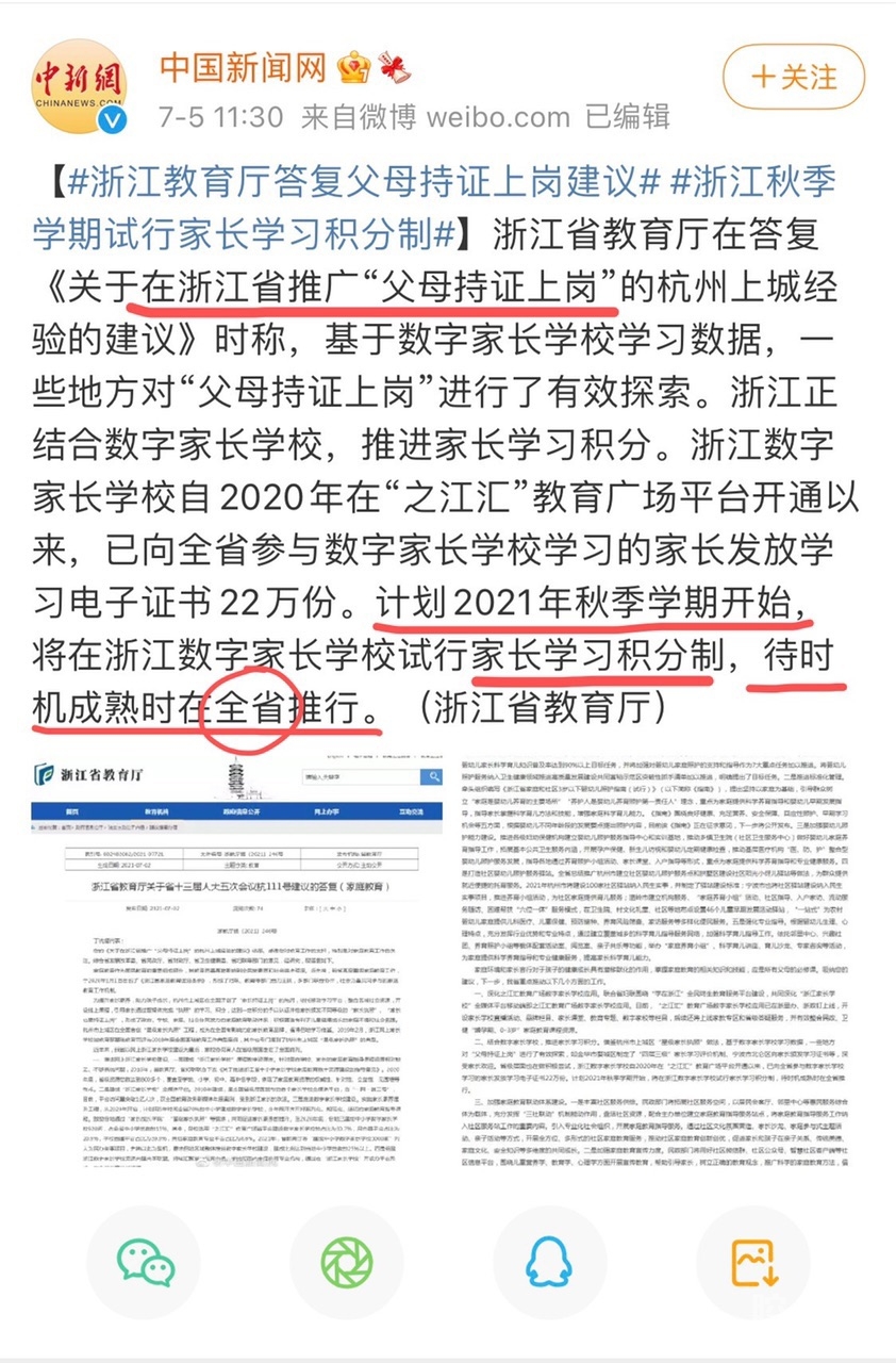 父母持证上岗。。浙江实行积分制,如果不及格会没收孩子吗