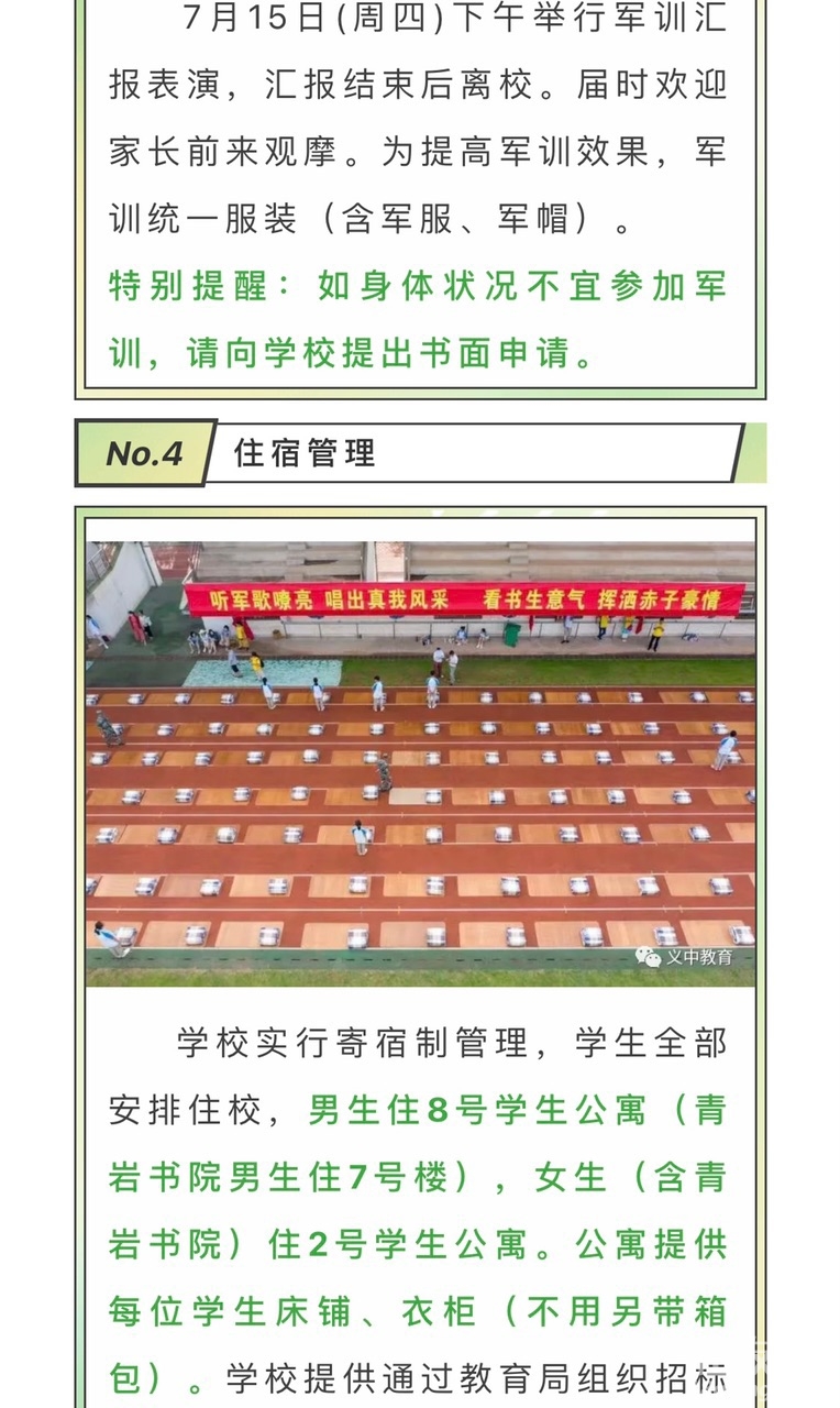 义中、青岩书院的军训通知来了,一定要努力啊,好的学校环境也好,他们把收费明细列出来了,很棒!
