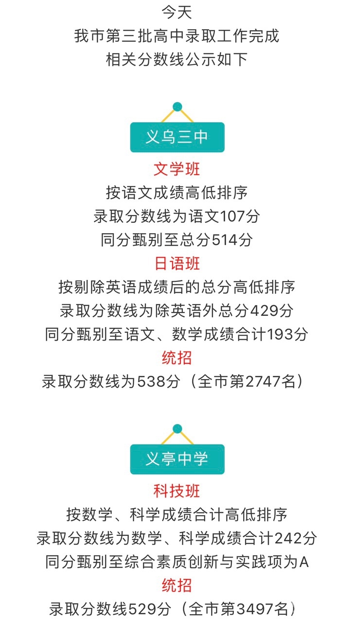 [义乌故事]2021年义乌市第三批高中录取分数线来了! [复制链接]
