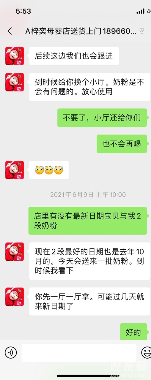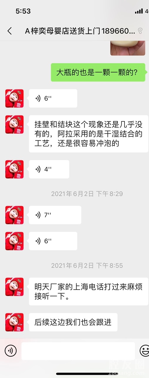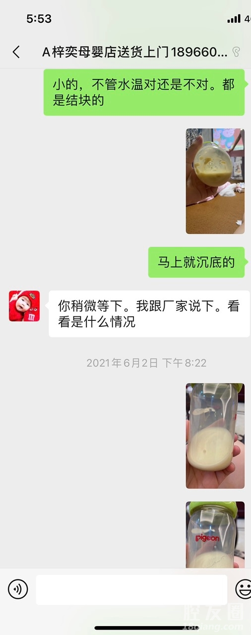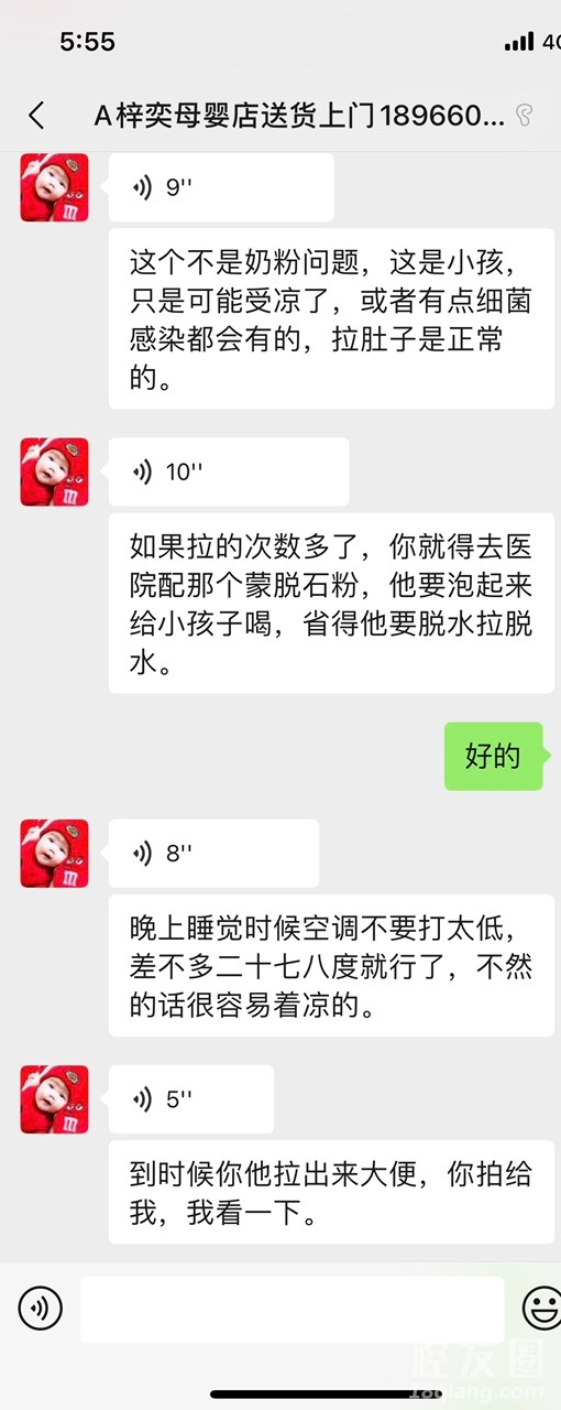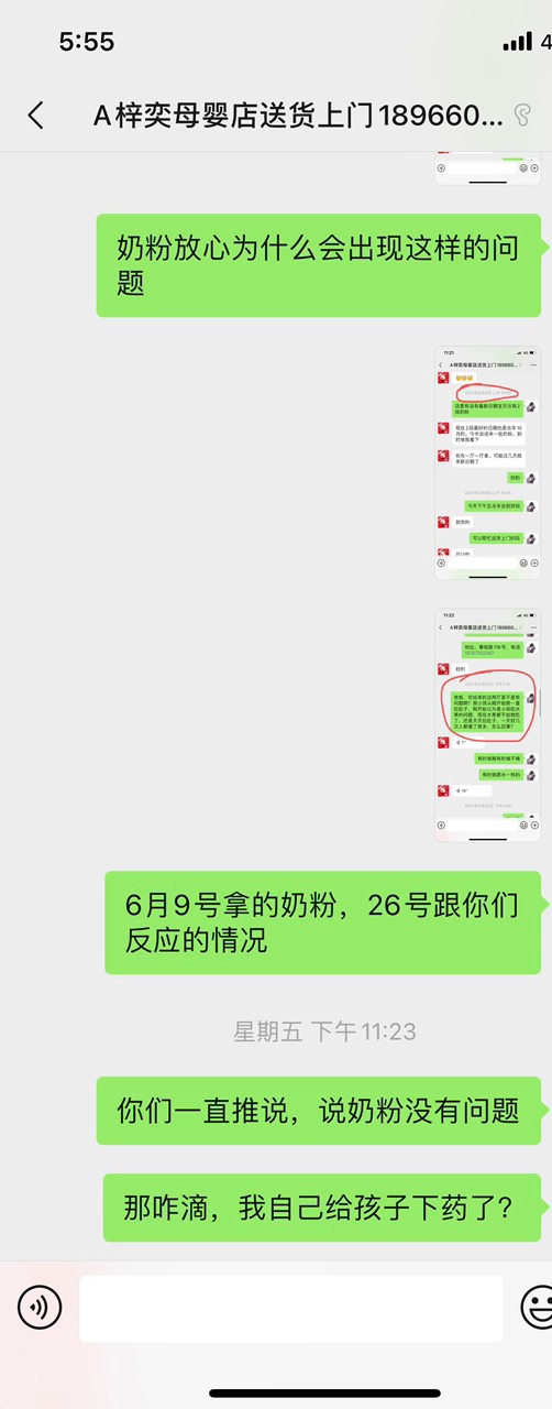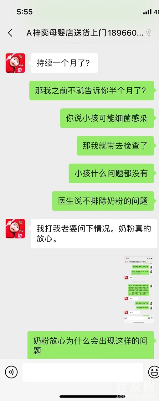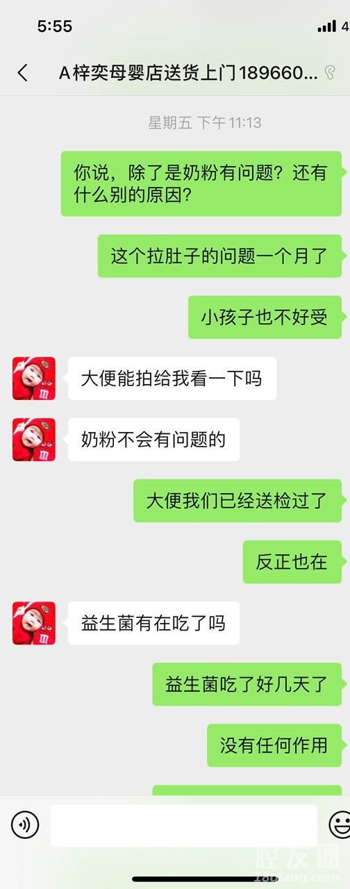 再后来我们将检查情况微信发给了老板,老板还是说奶粉没有问题的(这个时候小孩已经拉肚子24天了),然后我们去了其他母婴店,给小孩奶粉换了,换了当天就没有拉肚子了,最近几天大便情况非常好。