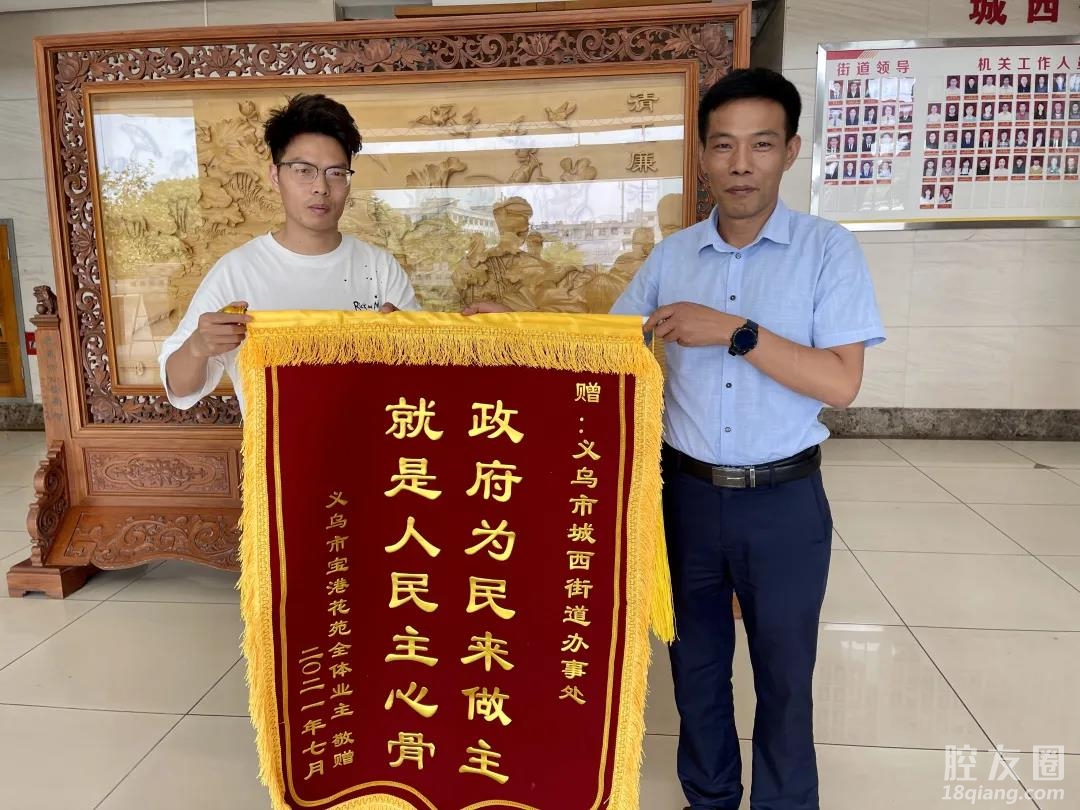 “如果没有政府出面协调,问题不会这么快得到解决,感谢街道办事处!”7月5日上午,义乌宝港花苑业主将一面印有“政府为民来做主 就是人民主心骨”的锦旗送到城西街道办事处常务副主任方晓明手上,