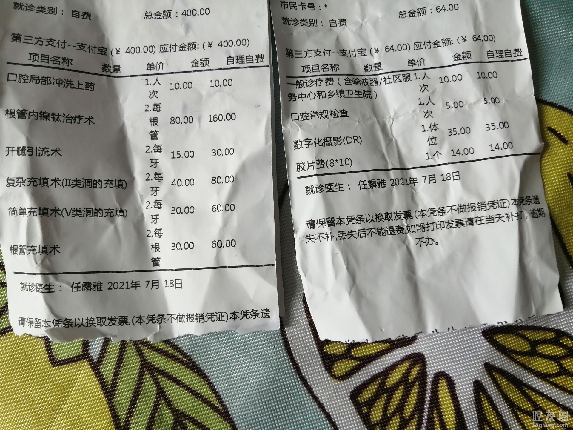 医生告诉我一颗牙治疗费5-6百,补牙2-3百,这样算下来补一颗牙要8-9百了