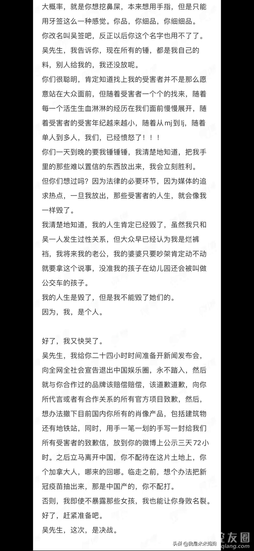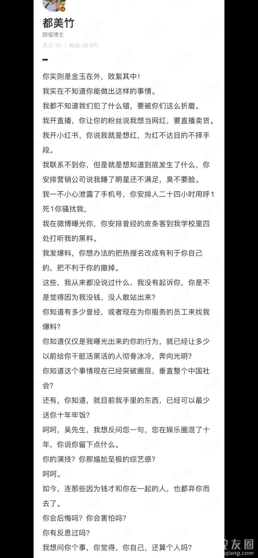 [义乌故事]闲来无事,浏览下最近的互联热点:都美竹手撕娘炮吴亦凡这事,内容有点劲爆啊! [复制链接]