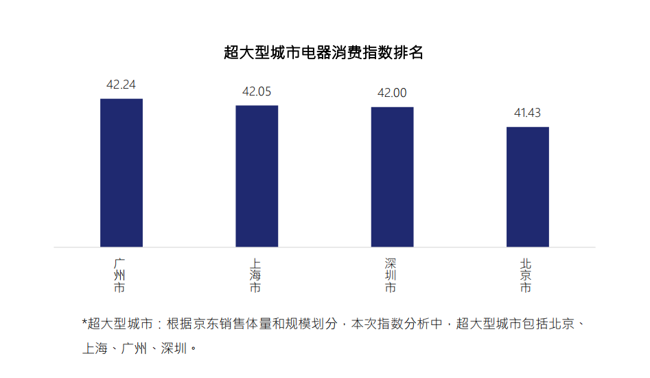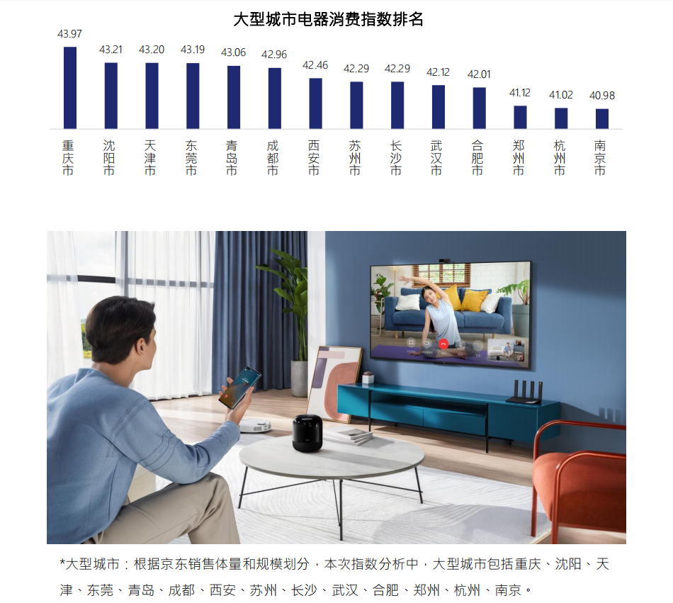 大型城市中,重庆作为以慢生活、旅游为标签的城市,从电器消费指数上看最倾向于生活享受;杭州作为互联网快速发展的城市,电器消费指数是各城市中较低的,而且在人们认知中也属于比较繁忙的城市。