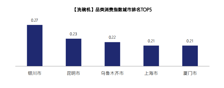 消费者对除菌的需求有所提升,诸如银川、昆明、乌鲁木齐、上海等城市洗碗机品类消费指数较高,是既能轻松解决餐具的清洁、抑菌等,也能提升生活品质和幸福感的厨电产品。