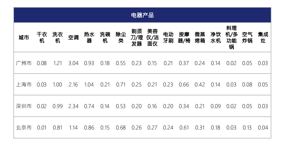 消费者对电器的态度,从省力到娱乐到个性化体验,如冰箱洗衣机绿色智能化、除菌要求等,越来越在意电器带来的高附加值和新体验。品质化消费逐渐成为驱动电器市场增长的新动力,例如在东北的厨电类(空气炸锅),以及西部的净水器品类,北京的护理类小家电产品,以及南方的干衣机品类。
