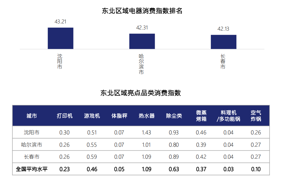 厉害了我的哥!东北人民不仅仅是吃货,更是美食的制造者,厨电品类消费指数高于全国平均值,如微蒸烤箱、料理机/多功能锅等,尤其空气炸锅品类消费指数在全国最高,此外也倾向于除尘类、热水器、游戏机、打印机等消费。