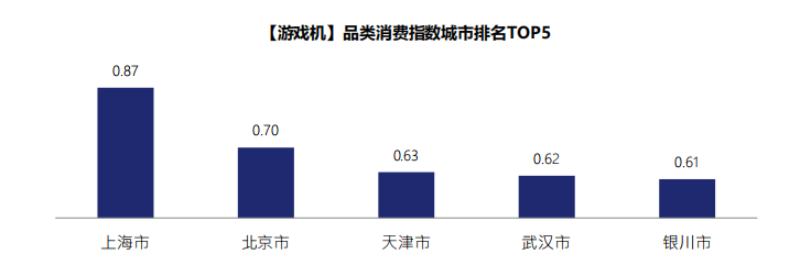 除了提升生活品质之外,“消磨”闲暇时间、让自己和家人精神上更愉悦,也是购买享受型产品的一大诉求。比如上海是游戏机品类消费指数全国最高的城市,遥遥领先于其它城市,是全国均值的两倍,也是深圳近两倍。可以说,上海是最喜欢玩游戏的城市。