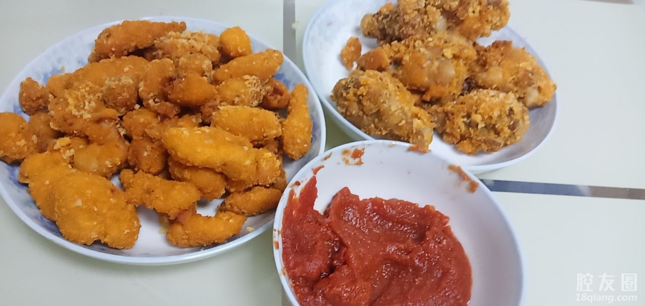 晚上自己动手做了番茄酱,鸡米花和炸鸡腿,太香了