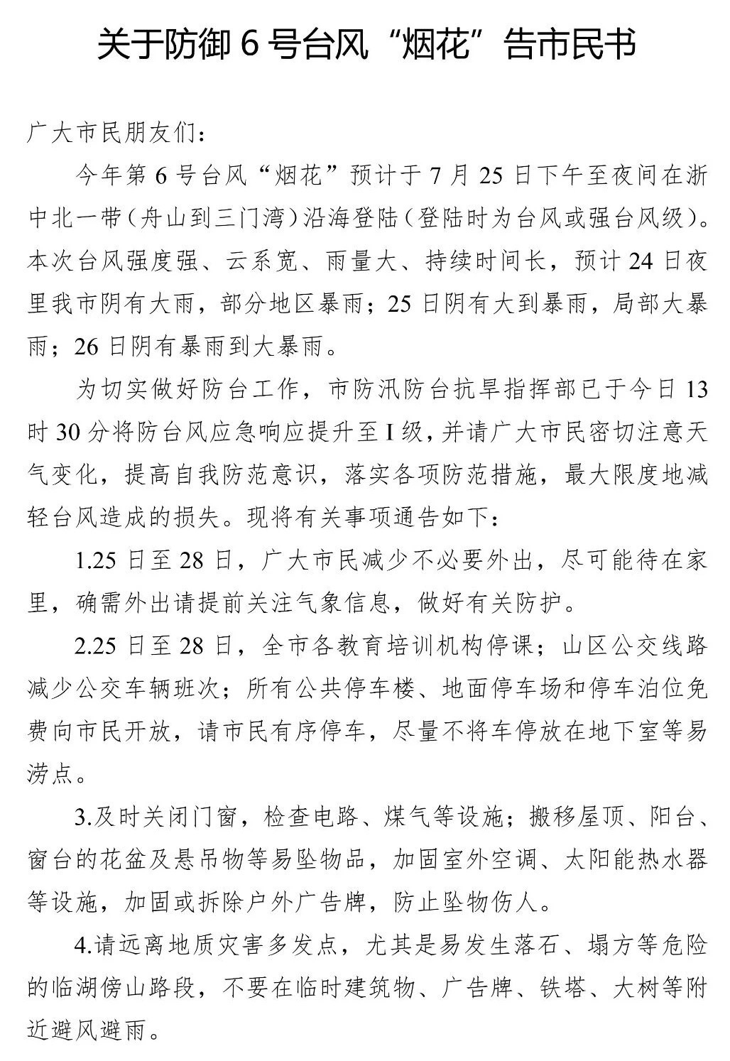 [义乌故事]关于防御6号台风“烟花”告市民书 [复制链接]