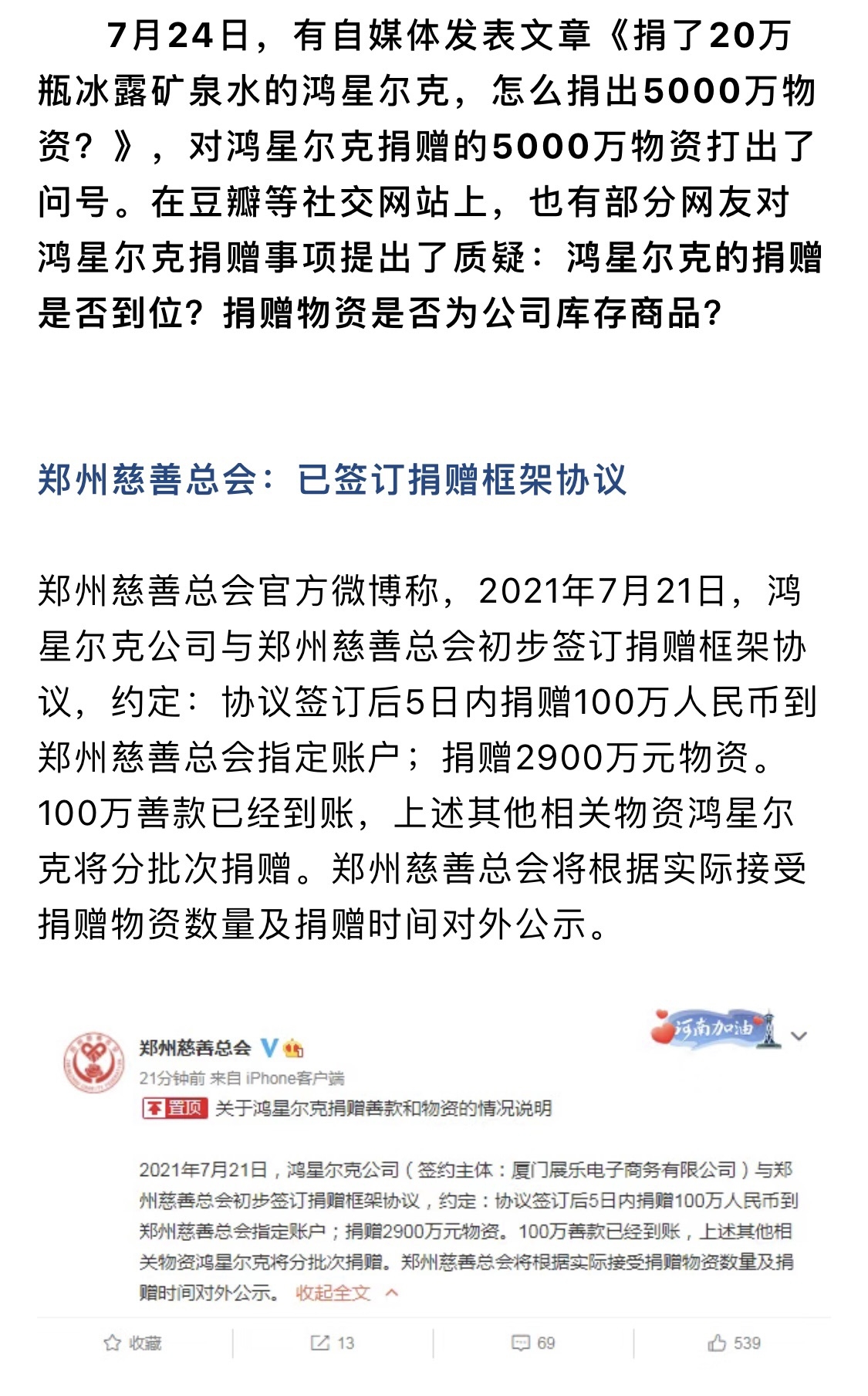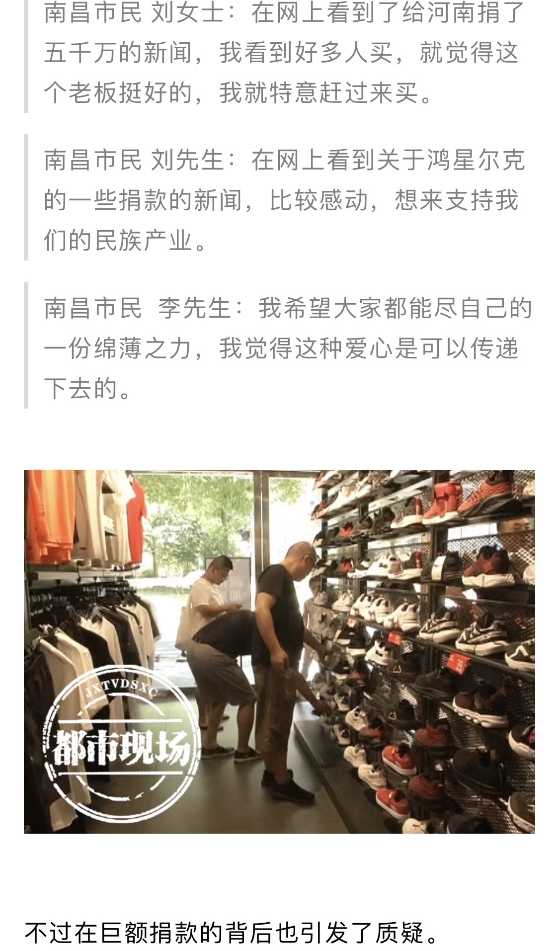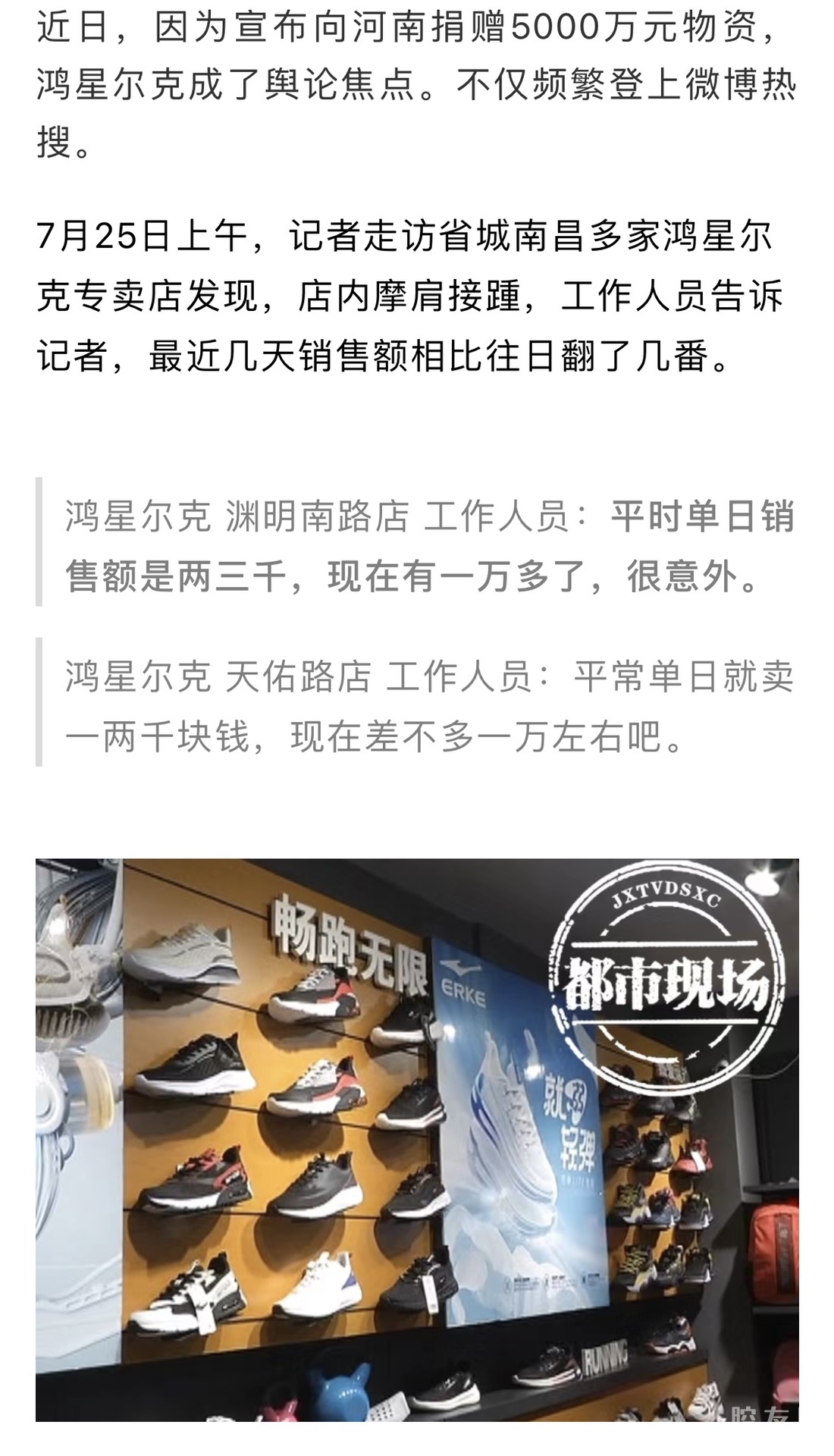[义乌故事]鸿星尔克5000万被质疑是诈捐,官方今天回应 [复制链接]