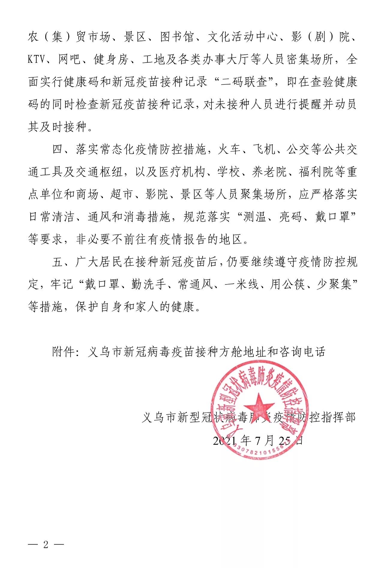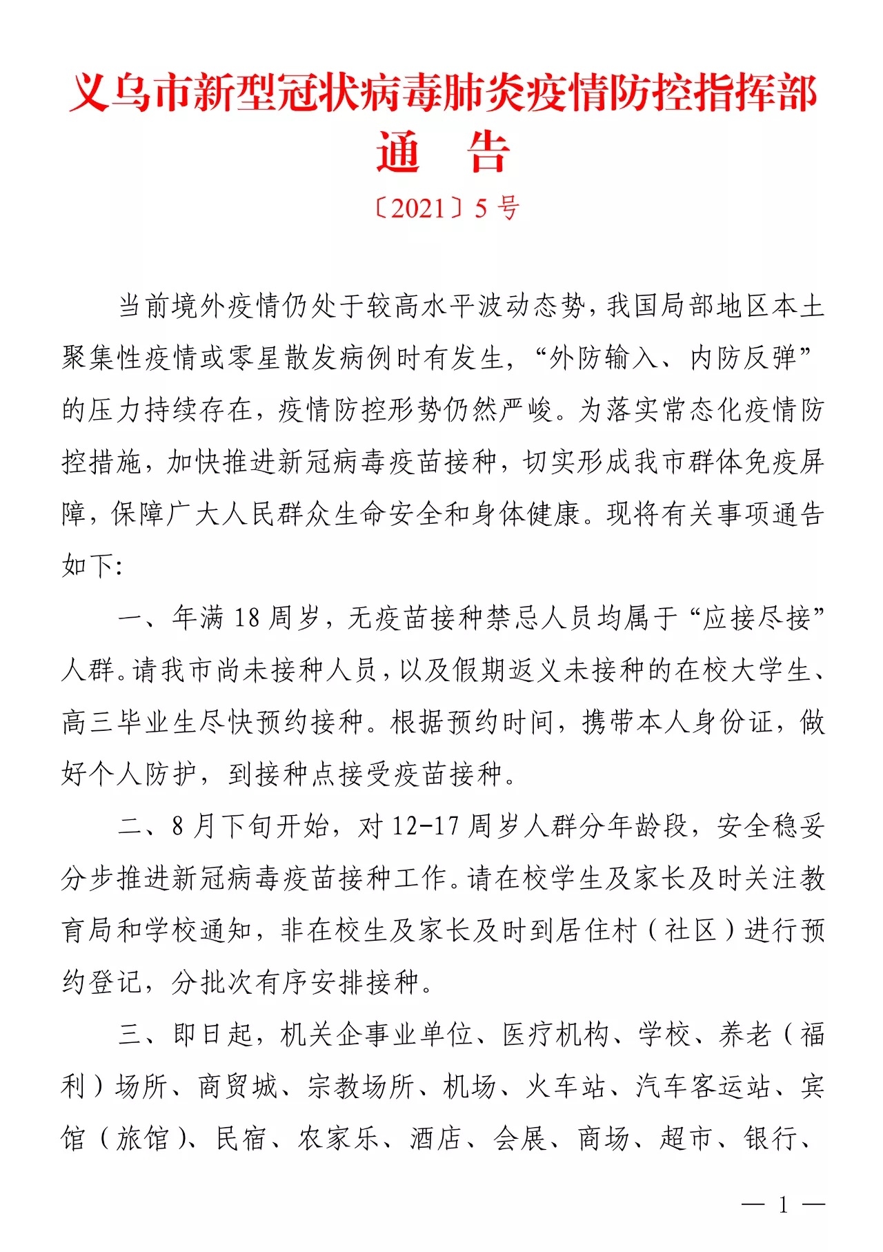 义乌市新型冠状病毒肺炎疫情防控指挥部通告(2021年第5号)