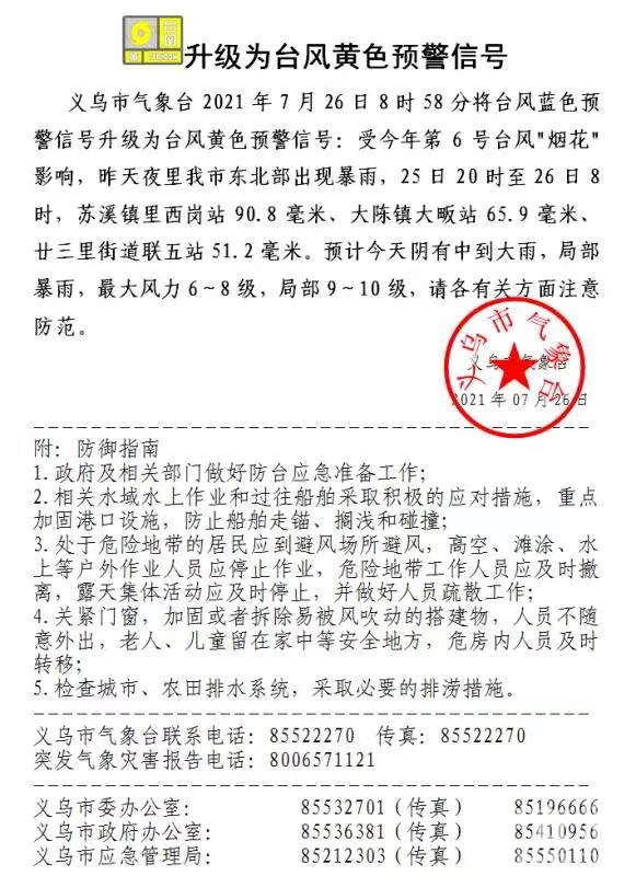 刚刚,台风“烟花”再次登陆!义乌升级为台风黄色预警信号