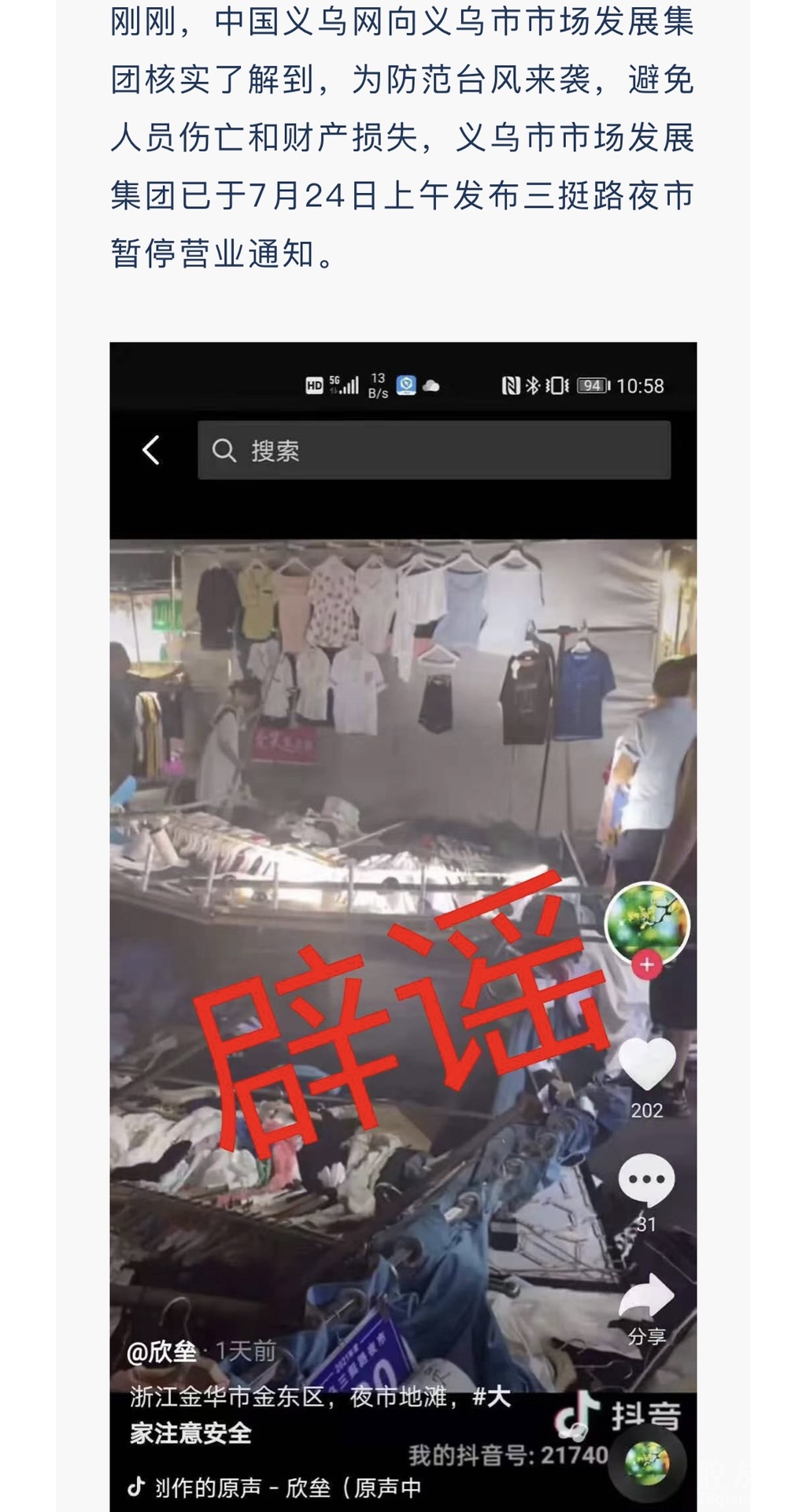 辟谣!义乌三挺路台风天仍有夜市出摊?假的!
